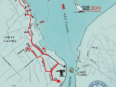 from the Royal Yacht Squadron on the Parade to the Classic Boat Museum on Thetis Road.
