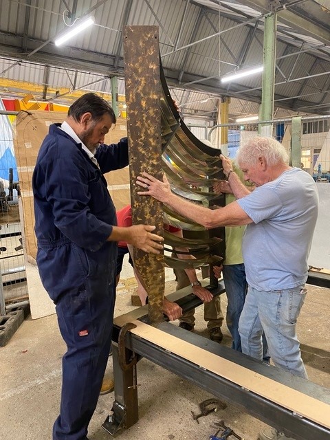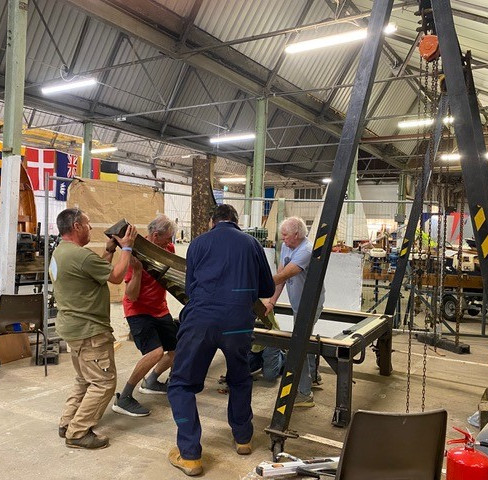 The museum has designed a special base to display the lens in the Boat Shed in the Medina Yard. It has taken the whole volunteer team to install it.